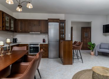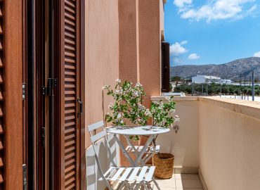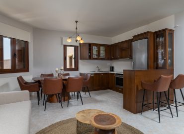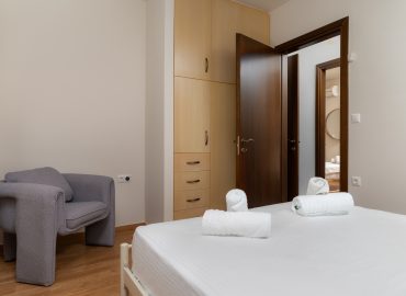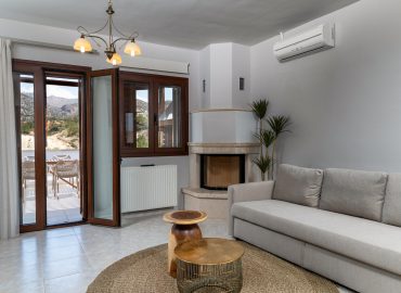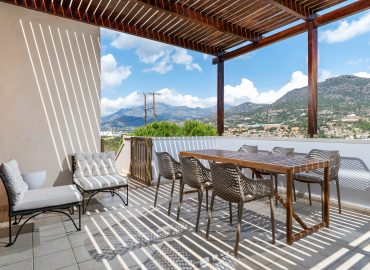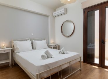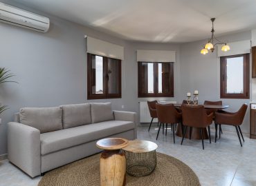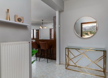 It is located on the first floor and has an awesome Cretan Mountain view, large windows and a lot of space inside and outside. It has 2 Bedrooms, 2 Bathrooms, Kitchen, Living & Dining Room. At the outside area, there is a big veranda where you can enjoy heartful moments with family & friends.